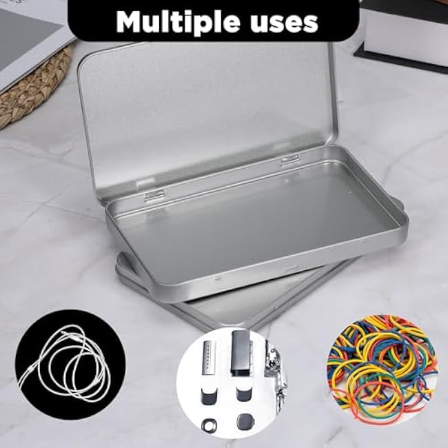 2 Pack Silver Rectangular Tins, Portable Storage Box Containers, Rectangular Metal Tin Boxes, Metal Tin Box with Hinged for Pen Eraser Craft Photos Sticky Notes