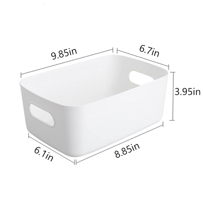 6 Pcs Plastic Storage Bins, Pantry Organization and Storage (9.85 x 6.7 x 3.95in) Baskets for Organizing, Organiser Boxes for Cupboard, Kitchen,Home,Office, Storage Basket With Handles(White)