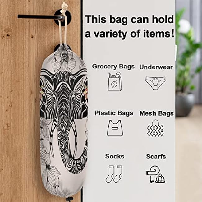 Be the first to review “Elephant Flower Plastic Bag Holder Grocery Bag Holder Large Wall Mount Garbage Plastic Bag Organizer Drawstring Adjustment for Kitchen, 22×9 in” Cancel reply