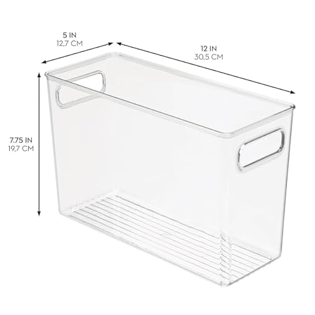 iDesign Plastic Stackable Kitchen Organizer Bin with Easy to Grip Integrated Handles for Kitchen, Fridge, Freezer, Pantry and Cabinet Organization, The Linus Collection ¨C 12 x 5 x 7.75, Clear