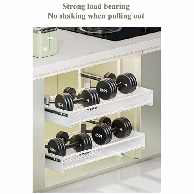 Pull Out Cabinet Organizer, Roll Out Shelf with Solid Steel Ball, Multi-Purpose Slide Out Drawers for Kitchen Cabinets, Bathroom, Pantry Organizer,80-110-53-100