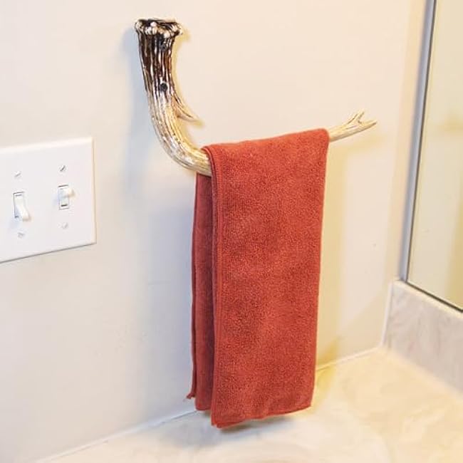 Rivers Edge Products Rivers Edge Products Deer Antler Hand Towel Rack – Wall-Mounted Hand Towel Holder – Decorative Hanger for Small Towels – Rustic Kitchen or Bathroom Decor for Home, Cabin, Lodge –